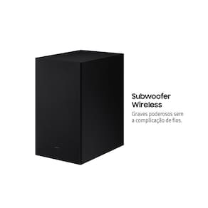 Modelo - HW-A555 Maximize o som do conteúdo que você assiste na sua TV. Amplie a área da emissão do áudio para as laterais e para cima e garanta uma experiência sonora envolvente e de maior qualidade com a potência de 410w da Soundbar Samsung A555.