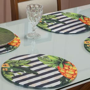 O Sousplat estampado com base é uma peça desenvolvida com a função de proteger a mesa e agregar estilo e sofisticação, seja para um simples jantar em família, ou ocasiões formais. Com diversas opções de estampa, pode ser adaptado facilmente na decoração de sua mesa posta, em conjunto com outros itens.
