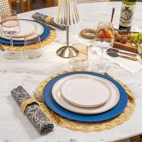 Sousplat Copa E Cia Basic Azul Sousplat Copa e Cia Basic Azul - Basic Características Gerais do Produto: - Composição: Polipropileno (Plástico) e Carbono de Cálcio. - Detalhes: Peça Vendida de Forma Individual.; Design Exclusivo Copa&Cia.; As cores podem sofrer pequenas alterações de cor, variando de monitor para monitor.; Os objetos que ambientam as fotos não acompanham o produto.; As fotos produzidas são apenas como sugestão de uso com as demais peças da coleção.; Acabamento laqueado - Cuidados: Não Armazenar as Peças Todas Juntas, Poderá Provocar Riscos.; Utilize Apenas para Fins Decorativos, Não use para Alimentação.; Caso Sujar o Produto, Limpar Imediatamente.; Não colocar em lava-louças e micro-ondas.; Evitar contato com objetos cortantes ou superaquecidos.; Não utilizar solventes, abrasivos ou alvejantes.; Limpar manualmente com pano úmido e detergente neutro. - Dimensões (cm): Diâmetro: 33 cm Acompanha o produto: - 1 Peça de Souaqusplat Garantia: - 7 dias/30 dias contra defeito de fabricação