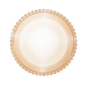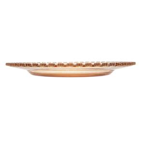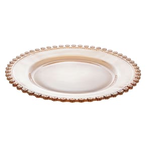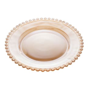 Sousplat de cristal com detalhes de flores de margaridas em toda a borda na cor âmbar. União da delicadeza e cuidado na hora de montar e servir sus convidados, uma peça indispensável, rica de detalhes.