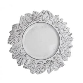 Sousplat Patinado Garden Leaf Premium Branco 35 cm - Lyor