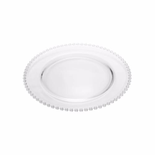Feito em cristal de alta qualidade, o sousplat possui um acabamento de bolinha nas bordas, o que o torna ainda mais charmoso. Com dimensões de largura de 31,5 cm, ele é perfeito para acomodar pratos e tigelas, evitando que eles escorreguem ou sujem a mesa.