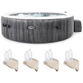 O spa espaçoso para banheira de hidromassagem inflável para 6 pessoas do modelo Intex 28441EP possui 140 jatos de alta potência e temperatura da água de até 104 graus Fahrenheit O sistema inclui banheira, tampa, sistema de aquecimento e filtragem, luz de mudança de cor, 2 cartuchos de filtro, 2 apoios de cabeça, pano de solo térmico e muito mais Construção Fiber Tech extra durável e material laminado de 3 camadas resistente a perfurações se levantam para usar durante toda a temporada A bandeja de bebidas conveniente e bonita mantém os refrescos ao seu alcance enquanto desfruta do conforto quente e relaxante do seu spa Possui 2 recipientes de bebidas de tamanho padrão nos porta copos e possui uma área aberta maior para outras bebidas, lanches ou itens Marca: Não Informado