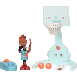 Bem-vindos ao Jam! Os Looney Tunes estão de volta e uniram forças com o campeão de basquete LeBron James em uma épica aventura cibernética em Space Jam: A New Legacy. Agora você pode ter a primeira figura de ação de tiro e mergulho, com o único LeBron James! Teste suas habilidades de tiro e mergulho. Para atirar, carregar a bola na mão, puxá-la para trás, atirar e marcar um Ponteiro 3! Para mergulhar, coloque LeBron no Lançador para lançá-lo no ar para um mergulho que só LeBron pode fazer! Desafie seus amigos para uma partida cheia de ação e use a discagem no Basquete Aro para manter a pontuação! Feito para excitar, esta figura shot & dunk está carregada com toda a diversão e ação do filme Space Jam: A New Legacy! Tudo está incluído para que você possa começar a filmar e mergulhar e mostrar seus movimentos! Este conjunto inclui um Basquete Aro com Placar, LeBron James Figure, Launcher, 2 Bolas de Basquete, Adesivos e um Manual de Instruções.