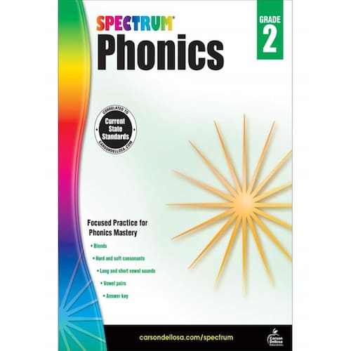 Workbook Features - Ages 7-8 Grade 2 - 50+ Lessons 160 Pages 108 Inches X 84 Inches - Topics Covered Beginning And Ending Sounds Short And Long Vowels Consonant Blends Pairs Rhyming Words And More - Review And Practice Pages - Answer Keyincluded Focused Practice The Spectrum Second Grade Phonics Workbook Features Focused Practice Through Progressive Lessons Covering The Essential Auditory Oral Visual And Writing Skills Required To Identify And Understand The Way The Letters Of The Alphabet Combine To Create Sounds The 160-Page Workbook Helps Kids Recognize Phoneme Patterns And Develop The Knowledge And Skills They Need To Be Successful Independent Readers Correlated To Current State Standards This Standards-Based Workbook Will Help Your Child Build Essential Phonemic Awareness Skills Including Pronouncing Single-Syllable Words By Blending Sounds Isolating And Pronouncing Initial Medial Vowel And Final Sounds Generalizing Learned Spelling Patterns When Writing Words And Knowing And Applying Grade-Level Phonics And Word Analysis Skills When Decoding Words How It Works Each Lesson Focuses On A Specific Concept To Help Your Second Grader Build And Reinforce Basic Reading Skills Fun Full-Color Activities Including Brainteasers Word Games And Writing Activities Help Your Student Explore And Fully Understand Each Phonemic Concept Working Together Parents Teachers And Students Can Accurately Monitor And Gauge Student Learning And Phonemic Readi