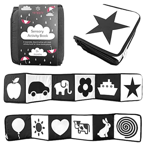 Spiggly Preto e Branco Alto Contraste Soft Baby Book – Brinquedo Neonatal para 0-3 Meses Desenvolvimento Visual e Cerebral – Brinquedo Infantil Barriga Tempo – Brinquedo Sensorial para Bebês 0-6 meses