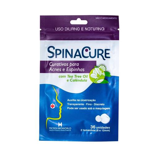 Spinacure curativo hidrocoloide acne e espinhas, impregnado tea tree e calendula, 36 un. Sache ziper micrex-bioworld O que é spinacure curativo hidrocoloide para acne e espinhas micrex-bioworld - o spinacure curativo hidrocoloide para acne e espinhas, impregnado com óleos tea tree e calendula micrex-bioworld, primeiro curativo de gel hidrocoloide impregnado de princípios ativos dermocosméticos óleo de tea tree e de calêndula para acnes e espinhas, ajuda no processo da cicatrização de forma discreta e não medicamentosa. Indicações - acne e espinhas. - pode ser desde os primeiros sinais de aparecimento das espinhas ajudando a prevenir o agravamento e a formação de novas lesões de acne, Vantagens - fácil aplicação, discreto, ajuda a esconder as lesões, pode ser utilizado durante a noite ou durante o dia. Podendo ser colocado embaixo da maquiagem. - pode ser utilizado em qualquer fase evolutiva. - seguro e eficiente, não medicamentoso - tratamento localizado e resultados visíveis Modo de uso: 1. Lave as mãos com sabão antes e depois da aplicação. 2. Assegure-se de que a pele está limpa e seca. 3. Abra o sachê individual e escolha um curativo do tamanho adequado para cobrir a lesão. 4. Retire delicadamente o curativo do filme suporte, colocando na ponta do dedo com a face adesiva para cima. 5. Aplique o curativo sobre a lesão, pressionando suavemente para garantir uma boa adesão. 6. Use preferencialmente um curativo de tamanho maior que a lesão para uma aplicação correta e máxima eficácia. 7. Não manter o mesmo por mais de 12 horas. Uso único recomendado. A troca também é recomendada caso a cor do curativo se tornar opaca. - pode usar durante o dia bem como durante a noite. - pode aplicar maquilagem sobre o curativo, garantindo uma aplicação discreta Princípios ativos: Gel hidrocoloide Tea tree oil Calêndula oil Modo de ação: - é um curativo autoadesivo semipermeável transparente com tecnologia hidrocoloide que absorve as secreções e atua no micro entorno das lesões criando um ambiente úmido que amolece a acne favorecendo a cicatrização e alivia eventual coceira. O curativo contém óleo de tea tree e de calêndula plantas conhecidas por suas propriedades dermocosméticas e agindo de forma mecânica reforçando a proteção lipídica superficial da epiderme. O curativo também age com barreira mecânica, isolando as lesões, evitando mais contaminação e disseminação das bactérias responsáveis. - existem diferentes tipos de acne. O tempo para cicatrização de cada uma é diferente. Por exemplo, em acnes de grau um, também conhecidas como comedônicas, com a utilização correta do curativo, hidrocoloide para acnes e espinhas, é esperado uma média de 3 dias para que elas sumam ou diminuam. Enquanto em acnes de grau 2, também chamadas de pápulo-pustulosa a média de dias varia entre 5 a 6 dias, utilizando de 5 a 8 curativos. Apresentações: - curativo autoadesivo semipermeável, cor transparente, em formato circular, 2 tamanhos de diâmetro 8mm e 12mm , espessura 0,22mm. - sachê alumino com zíper com 36 curativos transparente 24 unidades. Com diâmetro 8mm e 12 unidades. Com diâmetro 12mm .