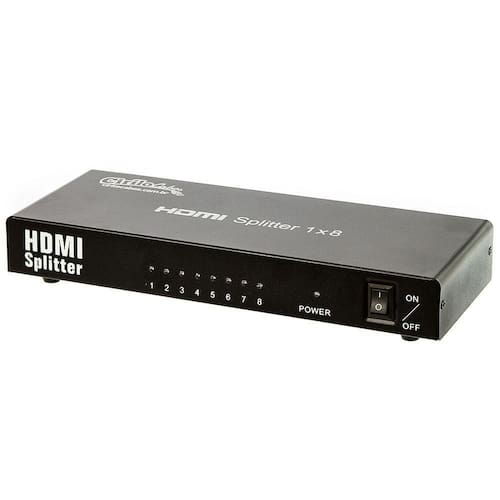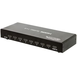 Splitter Hdmi 1x8 Saidas - Cirilo Cabos Distribua som e imagem FullHD para até 8 aparelhos televisores, monitores e projetores simultaneamente. Este Splitter 1x8 HDMI 3D é ideal para soluções em TI como: ambientes corporativos, conferências, apresentações, treinamentos, reuniões e aplicações em salões de eventos que necessitem de veiculação em diversas telas com a mesma imagem e som. Você pode ligar com simplicidade, sem necessidade de configuração o seu aparelho de DVD, Vídeo Game, Computador, de Tv a Cabo ou outros equipamento com saída HDMI. Especificações Imagem: Suporte 1080p com HDMI versão 1.4 e 3D Áudio: Suporte de Áudio sem compressão; Suporte Áudio Digital como DTS Digital, Dolby Digital incluindo DTS-HD e Dolby True HD ; Tamanho do aparelho: 27 x 13.5 x 2 cm Voltagem: Fonte de Alimentação Bivolt 110/220V - DC 5V / 3A Conteúdo da embalagem: - 1 x Splitter HDMI 1x8; - 1 x Fonte de Alimentação Bivolt; - 1 x Manual; : 3 meses Atenção: Verifique a compatibilidade com seu equipamento antes da compra, não nos responsabilizamos por incompatibilidades. Homologação Anatel: 049692011000 Marca: Não Informado