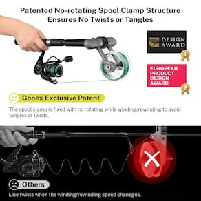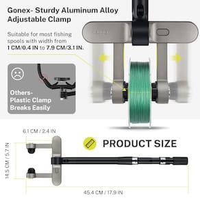Gonex Carretel de linha de pesca com função de desenrolamento sem instalação carretel enrolador de linha de pesca para molinete giratório molinete fundido e sistema de estação de carretel spincast - Patente exclusiva para funcionalidade sem torção e dupla: o carretel de linha Gonex torna o carregamento da linha sem complicações sem torções, nós ou emaranhados. Nosso carretel simplifica o enrolamento da linha e a remoção da linha - Ângulo de fixação ajustável: com um design inovador de interruptor de pressão de alça, nosso carretel pode ser facilmente ajustado para oito posições de bloqueio para uma instalação ideal - Braçadeira de liga de alumínio ajustável: uma braçadeira de metal resistente no enrolador de linha de pesca pode ser aberta até 7,9 cm, acomodando diferentes tamanhos de carretel - Compatível com vários molinetes: o carretel de linha de pesca Gonex é projetado para a maioria dos tipos de molinetes, incluindo spinning, spincast, baitcasting, trolling e molinetes de mosca - Resistente e portátil: Feito com um corpo fundido resistente à corrosão, o carretel de linha Gonex garante durabilidade e estabilidade. Pesando apenas 600 g e embalado em uma caixa elegante, o carretel de linha é uma ferramenta de pesca portátil e um presente perfeito