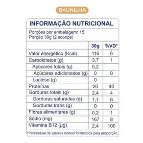Sport protein dobro 900g sabor baunilha Sabor: baunilha A sport protein foi formulada para oferecer o aporte de proteína que você precisa ao longo do dia de forma prática, gostosa e nutritiva. Com uma tabela nutricional clean label e uma textura cremosa, a proteína oferece uma experiência de suplementação confortável, leve e única. A composição conta com um blend de proteínas da ervilha, do arroz e da lentilha, que proporciona um aminograma completo. Além de ser sem glúten e sem lactose, a sport protein tem o adicional da dose recomendada diária de vitamina b12, entregando nutrientes que ajudam na manutenção do equilíbrio corporal. Ingredientes Proteína da ervilha pisum sativum l. isolada, proteína do arroz, leite de coco, proteína da lentilha lens culinaris medik. isolada, vitamina b12 metilcobalamina , estabilizante goma guar, aroma idêntico ao natural de baunilha e edulcorante estévia. Alérgicos: pode conter amendoim, leite, soja e ovo. Não contém glúten. Recomendação: dissolver 30g 2 scoops em 300ml de água gelada e consumir logo após o preparo. Consulte um da saúde para melhores resultados.