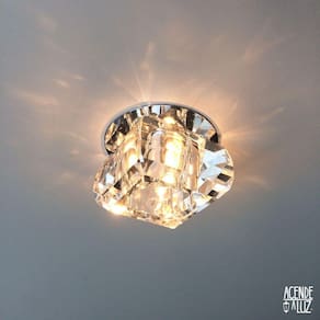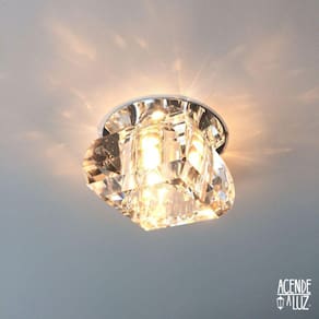 Spot de Embutir Linha Cristal K9 Base Redonda de Inox Descrição:- Materiais: Cristal e Inox- Soquete: G9- Tipo de lâmpada: LED ou halógena.- A cor da luminosidade será determinada pela lâmpada.- Potência máxima: 40W- Produto de alta qualidade- Garantia 1 ano- Dimensões: Base: 8 x 8 cm Cristal CxLxA: 7 x 7 x 4,5 cm Recorte da Superfície: 7 x 7 cm-- Não acompanha lâmpada --Informações importantes- Atente-se as medidas do produto.- Produto para embutir geralmente utilizado em gesso, forro ou móveis. Como todo o spot de embutir, para instalar, é necessário fazer um recorte na superfície onde vai ser aplicado.- Não pode ser instalado em caixinha de luz, como uma luminária de sobrepor.----------------------------------------------------------------Spots de Cristal são peças pequenas e delicadas para iluminação, geralmente usadas em conjunto. Esse produto não é um Lustre ou Plafon que são usados como peça central