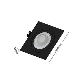 Dimensões AxLxP (mm): 35x100x100;Material: Termoplástico Proshield UV;Garantia: 5 anos junto ao fabricante;Grau de Proteção: IP 20;Lâmpada Inclusa: Não;Lâmpada Indicada: MR16;Local de Uso: Interno;Número de Lâmpadas: 1;Soquete: GU10;Nicho para Instalação: 90x90x80*mm *a profundidade pode variar de acordo com a lâmpada utilizada;Formato: Quadrado;Voltagem: Bivolt;Foco Orbital: 360°;Compatibilidade: Utilizar somente com lâmpada LED;Sistema Click: Substitui a lâmpada sem remover o embutido; Itens Inclusos:1 Spot de Embutir Plano Ean: 7898583683894