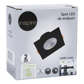 Este spot quadrado de embutir e ideal para iluminar ambientes internos como banheiros e corredores. Com um design moderno na cor preta e formato quadrado, este produto combina elegancia com eficiencia. Fabricado em policarbonato, um tipo de plastico conhecido por sua durabilidade, o spot possui LED integrado de 5W, capaz de produzir uma luz branca com temperatura de cor de 6500 K e brilho de 400 lumens. A instalacao de embutir torna-o discreto e perfeito para complementar qualquer decoracao sem ocupar espaco visual. Sua tensao eletrica e bivolt, adaptando-se facilmente a diferentes necessidades de alimentacao eletrica. Alem disso, o produto tem uma longa vida util, com duracao estimada do LED de 25.000 horas, garantindo iluminacao por um longo periodo. Este spot e uma escolha eficiente e pratica, com um indice de protecao IP 20, indicando que e adequado para ambientes internos nao expostos a agua. Acompanha de 24 meses, proporcionando maior seguranca na compra. Com apenas 0,06 Kg, e leve e facil de manusear durante a instalacao. Ideal para quem busca funcionalidade e estilo em iluminacao.