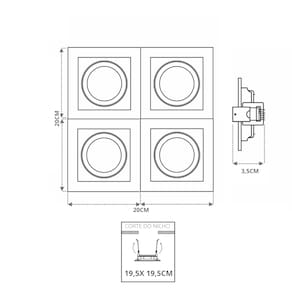 • Dimensões AxLxP (CM): 3,5 x 20 x 20