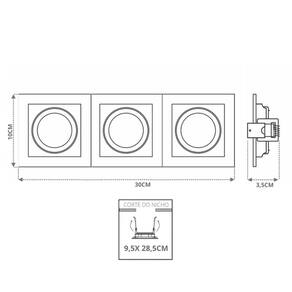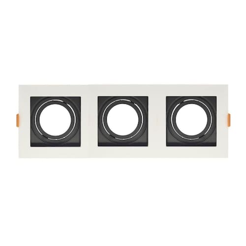 Spot de Embutir Quadrado Recuado Triplo Mr16 Direcionável Branco com Preto