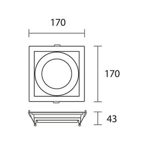 Especificações gerais do produto: Dimensões (AxLxP): 43x170x170 mmMaterial: PolicarbonatoGarantia: 1 ano junto ao fabricanteReferência: 55361004 (Branco)Grau de Proteção: IP20Lâmpada Inclusa: NãoLâmpada Indicada: AR111Local de Uso: InternoNúmero de Lâmpadas: 1Soquete: GU10Potência Máxima (por soquete): 50WNicho para Instalação: 160x160 mmFormato: QuadradoFrequência: 50/60 HzVoltagem: BivoltRecuado: SimSistema Click: Troca da lâmpada sem retirar o spot do teto O que vem na caixa: 1 Spot