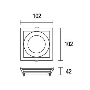 Dimensões (AxLxP): 42x102x102 mmMaterial: PolicarbonatoGarantia: 1 ano junto ao fabricanteGrau de Proteção: IP20Lâmpada Inclusa: NãoLâmpada Indicada: MR16Local de Uso: InternoNúmero de Lâmpadas: 1Soquete: GU10Potência Máxima (por soquete): 50WNicho para Instalação: 95x95 mmFormato: QuadradoFrequência: 50/60 HzVoltagem: BivoltRecuado: SimSistema Click: Troca da lâmpada sem retirar o spot do teto