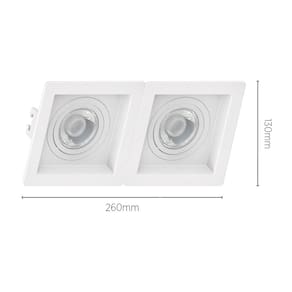 Especificações Gerais do Produto: Dimensões AxLxP (mm): 35x260x130 Material: Termoplástico Proshield UV Garantia: 5 anos junto ao fabricante Referência: SE-330.2072 (Branco) Grau de Proteção: IP 20 Lâmpada Inclusa: Não Lâmpada Indicada: AR70 Local de Uso: Interno Número de Lâmpadas: 2 Soquete: GU10 Nicho para Instalação: 250x120x80*mm *a profundidade pode variar de acordo com a lâmpada utilizada. Voltagem: Bivolt Foco Orbital: 360° Recuado: Sim Sistema Click: Substitui a lâmpada sem remover o embutido Observação: Utilizar somente com lâmpada LED Cor: Branco