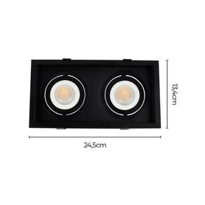 Spot De Embutir Recuado Nordecor Flea Duo Para 2 Lâmpadas Par20 E27 Bivolt Preto 6334 - Dimensões AxLxP (mm): 245x134- Material: Policarbonato- Garantia: 1 ano junto ao fabricante- Referência: 6333 (Branco); 6334 (Preto)- Grau de Proteção: IP 20- Lâmpada Inclusa: Não- Lâmpada Indicada: PAR20- Local de Uso: Interno- Número de Lâmpadas: 2- Soquete: E27- Nicho para Instalação: 230x120mm- Formato: Retangular- Direcionável: Sim- Frequência: 50/60 Hz- Voltagem: Bivolt- Recuado: Sim O que vem na caixa:1 Spot