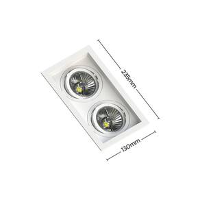 Especificações gerais do produtoDimensões AxLxP mm : 35x235x130Material: Termoplástico Proshield UVGarantia: 5 anos junto ao fabricanteReferência: SE-330.2911 Branco Lâmpada Inclusa: NãoLâmpada Indicada: AR70Local de Uso: InternoNúmero de Lâmpadas: 2Soquete: GU10Nicho para Instalação: 115x220x80mm A profundidade pode variar de acordo com a lâmpada utilizada.Formato: RetangularVoltagem: BivoltFoco Orbital: 360Compatibilidade: Utilizar somente com lâmpada LEDRecuado: SimSistema Click: Substitui a lâmpada sem remover o embutidoO que acompanha o produto1 Espeto para Jardim Marca: Não Informado