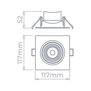 Dimensões AxLxP (mm): 52x117x117Material: ABSGarantia: 2 anos junto ao fabricanteNicho para Instalação: Ø 90mm (3.5/8")Dimerizável: NãoFormato: QuadradoDirecionável: SimFrequência: 50/60 HzÂngulo de Abertura: 30°Fator de Potência: >0,4Potência: 7WVida Útil: 25.000 horasModelo/Tecnologia: LED EmbutidoIRC (Índice de Reprodução de Cor): >80Voltagem: BivoltPlano: Sim Itens inclusos:1 Spot de Embutir Plano1 Fonte Integrada