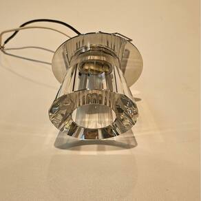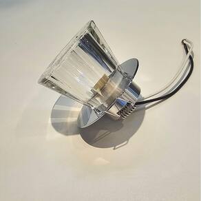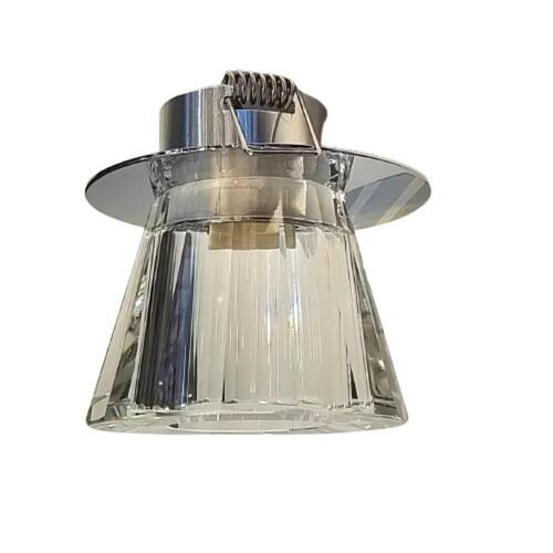 Spot Embutido Redondo Bloco De Cristal Conico 1Xg9 - Nyx Spot Plafon de embutir Nyx com bloco de cristal para LED, com acabamento em metal cromado. Indicado para nichos, prateleiras e pequenos ambientes de destaque. Pode ser utilizada em áreas como cozinhas, banheiros, quartos, salas de estar, sala de jantar, closet, corredores, pois é uma iluminação difusa e se distribui no ambiente. Comporta 1 lâmpada halopin de LED com soquete G9 de até 5W não incluso . Produto montado. Medidas externas: L 7 - P 7 - A 6 cm. Medidas de furação - 4,5cm de diâmetro. Bivolt.