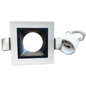 Soquete: GU10 Cor: Branco / Preto Material: Plástico ABS + UV Modelo: Quadrado Dimensões: 5,5 x 5,5 x 3 cm Nicho para embutir: 4,3 cm Proteção: IP20 Acabamento: Recuado