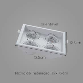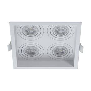 Embutido Recuado Quádruplo para 4 Lâmpadas Minidicroica com soquete GU10, produzido em Proshield UV, um composto termoplástico de engenharia com aditivo especial para proteção ultravioleta, desenvolvido pela Save Energy.