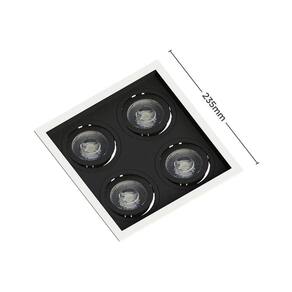 Spot Embutir Recuado Save Energy 4 Lâmpadas Par 20 Bivolt Branco/preto Dimensões AxLxP (mm): 35x235x235;Material: Termoplástico Proshield UV;Garantia: 5 anos junto ao fabricante;Grau de Proteção: IP 20;Lâmpada Inclusa: Não;Lâmpada Indicada: PAR20;Local de Uso: Interno;Número de Lâmpadas: 4;Soquete: E27;Nicho para Instalação: 220x220x125*mm *a profundidade pode variar de acordo com a lâmpada utilizada;Formato: Quadrado;Voltagem: Bivolt;Foco Orbital: 360;Compatibilidade: Utilizar somente com lâmpada LED;Sistema Click: Substitui a lâmpada sem remover o embutido; Itens Inclusos:1 Spot de Embutir Recuado para 4 Lâmpadas