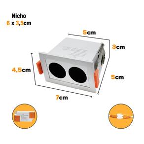 #CARACTERÍSTICAS Potência: 4W Temperatura: 3000K / 4000K / 6500K Dimerizável: Não Fluxo Luminoso: 480 Lumens Ângulo de Abertura: 24 Graus IRC: >80 Frequência Nominal: 50/60Hz Fator de Potência: 0.5 Índice de proteção: IP20 (Uso Interno) Temperatura de operação: -20 a 40 Graus Celsius Vida útil: L70 (50.000 Horas) Dimensões C 4,8cm x L 7cm x A 4,6cm Tamanho do Nicho: 6x3,5cm Peso Liquido: 138g