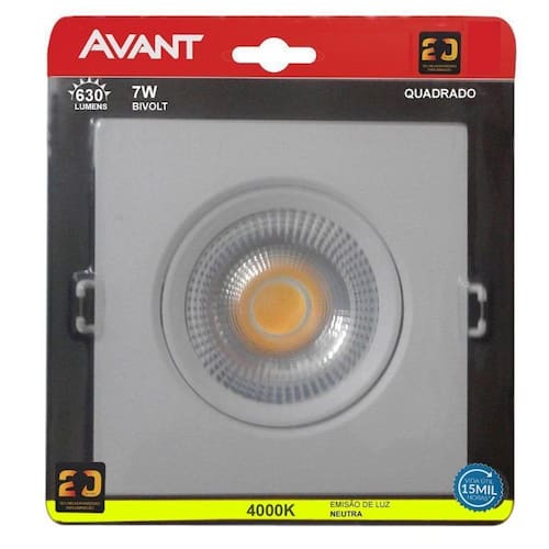 Spot Led Cob Embutir Quadrado 7W Direcionável Bivolt Avant