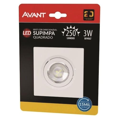 - 1 Spot Led Embutir Quadrado 3w Direcionável 3000k ( Luz Amarela) Avant