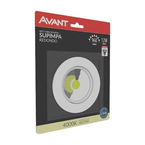 DESCRIÇÃO COMERCIAL: LED-SPOT-AUTHENTIC-EMB-RED-NE4000K-12W-BIVOLT-960 FLUXO LUMINOSO: 960 lm CANDELAS: 900 EFICIÊNCIA LUMINOSA: 80 lm/W FATOR DE POTÊNCIA: ?0,50 TEMPERATURA DE COR: 4000K NICHO DE CORTE(mm): 120mm DIMENSÕES (mm): 140 x 140 PESO: 162g