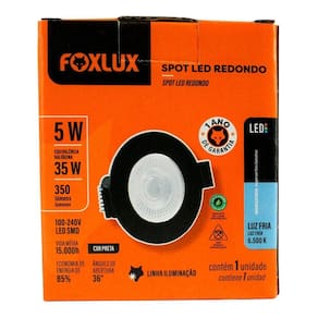 Spot Led Foxlux Redondo Embutir 5w 6500k Bivolt Preto