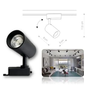 Contém: - 01 Spot Para Trilho Eletrificado Preto com Lâmpada Led de 7W Branco Frio 6500K
