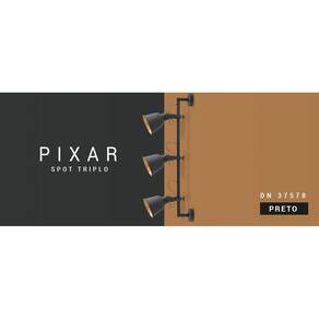 Spot Pixar triplo trás um estilo industrial em alumínio e acabamento bem definido, 3 soquetes E27 para lâmpadas entre A60, G45 e T45, a escolha da lâmpada fica a critério do usuário, porém devem somar no total o máximo de 40W. Acabamento em alumínio na cor Preto.