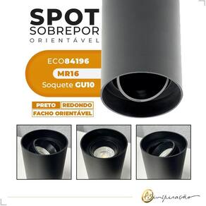 O Spot de Sobrepor Redondo é a escolha perfeita para iluminar com estilo e versatilidade. Com sua função orientável, você pode direcionar a luz para realçar objetos, obras de arte ou pontos específicos do seu espaço, criando efeitos incríveis. Com encaixe para lâmpada MR16 dicroica, você tem a liberdade de escolher a lâmpada que melhor se adequa às suas necessidades e preferências. Seja para uma luz mais direcionada ou para criar um ambiente aconchegante, a escolha é sua. Lâmpada vendida separadamente.