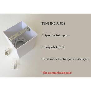 Nós da Acende a Luz procuramos trazer o que há de mais atual e moderno no mundo da Iluminação priorizando sempre a qualidade. Procuramos não apenas atender às suas necessidades, mas superar expectativas. Assim estabelecendo uma relação de confiançaNossa missão é garantir a satisfação total dos nossos clientes.Os spots de sobrepor são luminárias modernas e que proporcionam um lindo acabamento, mais sofisticado. São capazes de prover uma iluminação eficiente e diferenciada. Os spot de sobrepor Ar70 tem o acabamento impecável, possuem recuo na lâmpada proporcionando maior conforto visual, são direcionáveis e de fácil instalação e manutenção. São perfeitos para deixar o seu ambiente mais bonito e confortável. Possui sistema click, no qual não é necessário retirar o spot para troca de lâmpada. Descrição:- Material: ABS - Cor: Branco- Dimensões: Largura: 11 cm Altura: 15 cm- Tipo de lâmpada: Ar70- Potência máxima: 40W- Tensão: 100V - 240V- Grau de Proteção: IP20- Frequência: 50/60HZITENS INCLUSOS- 1 Spot de Sobrepor.- 1 Soquete Gu10.Parafusos e buchas para instalação. - Possuem foco Direcionável - Fácil Limpeza pano seco sem produtos abrasivos - Possui sistema click, no qual não é necessário retirar o spot para troca de lâmpada. - Uso externo / interno- Não Acompanha Lâmpada -
