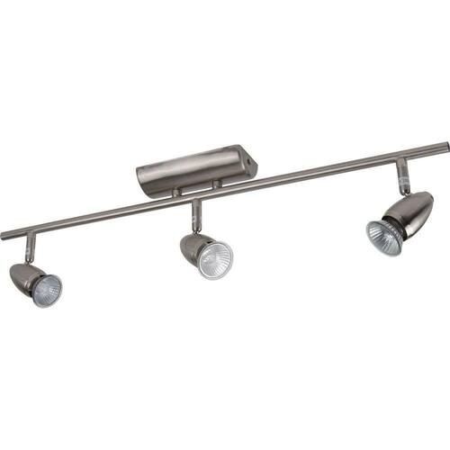Spot trilho arandela euro triplo para led Spot trilho euro considerado uma peça técnica e funcional, luminária leve e fácil de instalar é indicada para salas, quartos, corredores, hall de entrada, cozinhas e escritórios. Seu material é aço escovado. Comporta 3 lâmpadas de soquete gu10 de led com potência de 7w não inclusas . Spot euro de sobrepor articulado em aço escovado. 3x led gu10 não incluído. Produto montado. Medidas: l 65 cm - p 13 cm - h 12 cm. Bivolt x005fx000d Marca: Não Informado