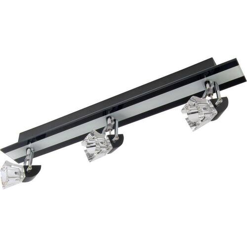 Spot trilho arandela nereu triplo de cristal para led Spot arandela nereu considerado uma peça técnica e funcional, luminária leve e fácil de instalar é indicada para salas, quartos, corredores, hall de entrada, cozinhas e escritórios. Também indicada para arandela de quadro. Seu material é metal cromado com vidro e cristal. Comporta 3 lâmpadas de soquete g4 de led com potência de 4w não inclusas . Spot nereu de sobrepor articulado com vidro pintado preto/branco, base de metal preta e difusor em cristal. 3x g4 não incluso. Produto desmontado. Medidas: l 58 cm x p 9 cm x h 13 cm. Bivolt x005fx000d