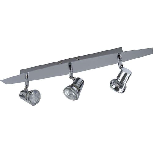 Spot trilho arandela noto triplo para led Spot trilho noto considerado uma peça técnica e funcional, luminária leve e fácil de instalar é indicada para salas, quartos, corredores, hall de entrada, cozinhas e escritórios. Seu material é metal cromado. Comporta 3 lâmpadas de soquete gu10 de led com potência de 7w não inclusas . Spot noto triplo cromado articulado de sobrepor. 3x led-gu10 não incluso. Produto montado. Medidas: l 52 cm - p 10 cm - h 12 cm. Bivoltx005fx000d