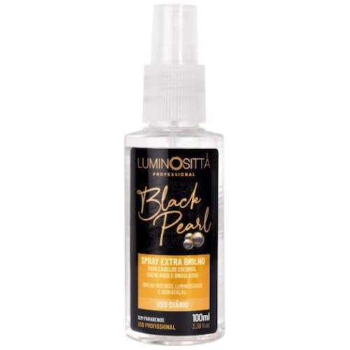 Spray Black Pearl Extra Brilho Perfume 100 Ml Luminosittà Spray Extra Brilho Black Pearl O Spray Extra Brilho Black Pearl promove o brilho, a luminosidade e a hidratação dos cabelos sem pesar nos fios. Reduz o frizz e deixa os cabelos perfumados por mais tempo. Este produto foi especialmente desenvolvido para a retenção de umidade e prevenção do ressecamento. Indicado para uso diário e todos os tipos de finalização. Ean: 7890727903196