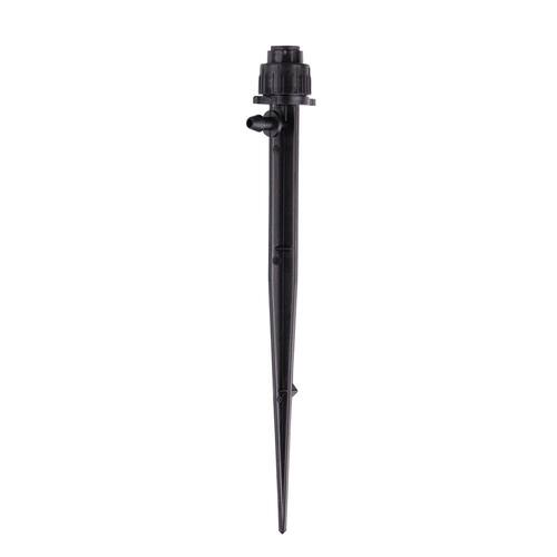 - Conecta-se ao sistema de irrigação por gotejamento: o emissor é montado em um 12,7 cm. estaca e um embutido de 6 mm (1/4") Entrada farpada na estaca se conecta a 6 mm (1/4 polegada). Tubo de alimentação com diâmetro externo (OD) 0,6 cm, diâmetro interno (ID) 0,170 pol.