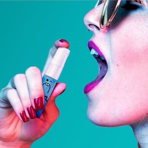 Modo de usar 1. Retire a trava para desbloquear o spray. 2. Direcione a válvula para o interior da boca. 3. Pressione o borrifador e pronto
