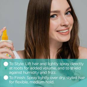- COMO MODELAR: levante o cabelo e borrife levemente na raiz para adicionar volume e proteger a umidade. Use como spray finalizador sobre cabelos secos e estilizados para uma fixação flexível e média. Este spray fará seu cabelo brilhar sem parecer pegajoso e pesado