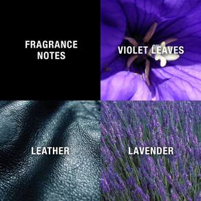 - As 3 principais notas de fragrância incluem folhas de violeta, lavanda e couro