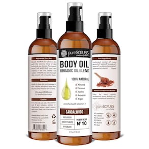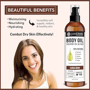 pureSCRUBS Spray de óleo corporal ultra hidratante de sândalo para pele seca, estrias, cicatrizes, super mistura orgânica de óleos de jojoba, argan, coco, amêndoa doce e abacate enriquecidos com vitamina E - 113 g