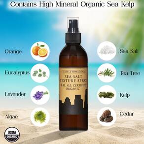 - Este produto é infundido com algas marinhas orgânicas para manter o cabelo saudável e hidratado. A alga marinha é um hidratante e condicionador natural, permitindo que você colha todo o incrível volume e textura fornecidos pelo nosso spray de textura de sal marinho.