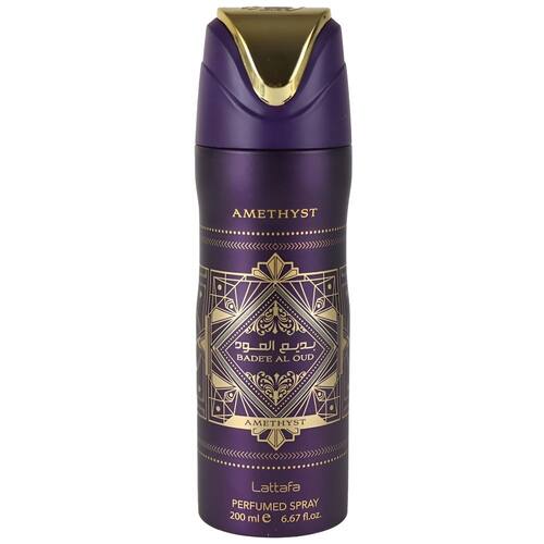 Ametista Lattafa Bade'e Al Oud — Floral, picante, amadeirada, doce — Spray desodorante perfumado para todos, 6,67 onças/200 ml