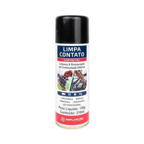 Embalagem: 130g / 210mlComposição: Propelente Butano Propano e Solvente HidrocarbonetoAplicação: Compatível com a maioria dos plásticos e metaisPrincipais Aplicações: Ideal para informática, eletrônica, elétrica e automotiva, sendo eficaz em sintonizadores, CD-ROMs, monitores, conectores, circuitos impressos e muito mais.Com o Spray Limpa Contato, você garante um desempenho superior em seus dispositivos eletrônicos, evitando falhas de funcionamento e prolongando a vida útil dos equipamentos. Não perca tempo e aproveite essa oportunidade de manter seus circuitos sempre em perfeitas condições!